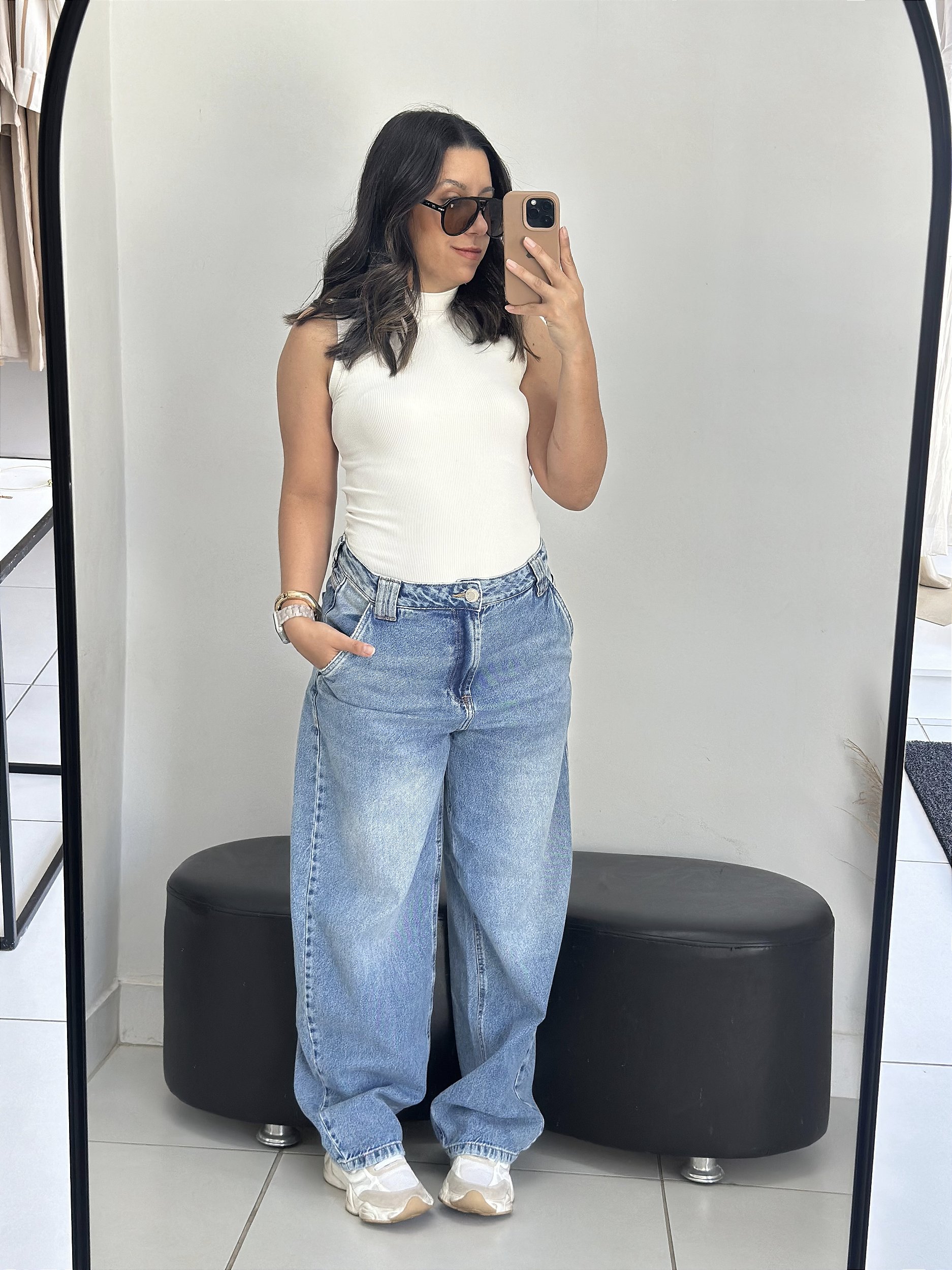 Calça jeans modelo BAGGY, 100% algodão, ou seja é uma calça que não possui elastano, e vai laciar ainda mais com o uso, voltando a sua forma original quando lavada.