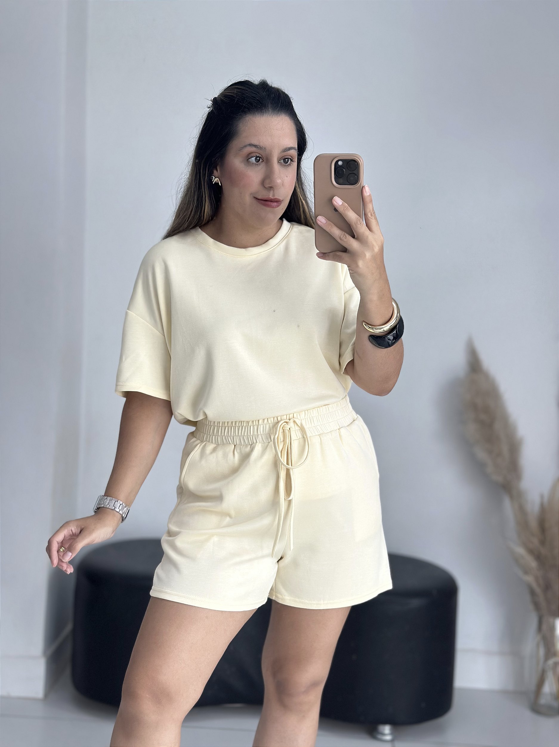 Detalhes: conjunto no estilo camiseta over e shorts com elástico e bolso faca.