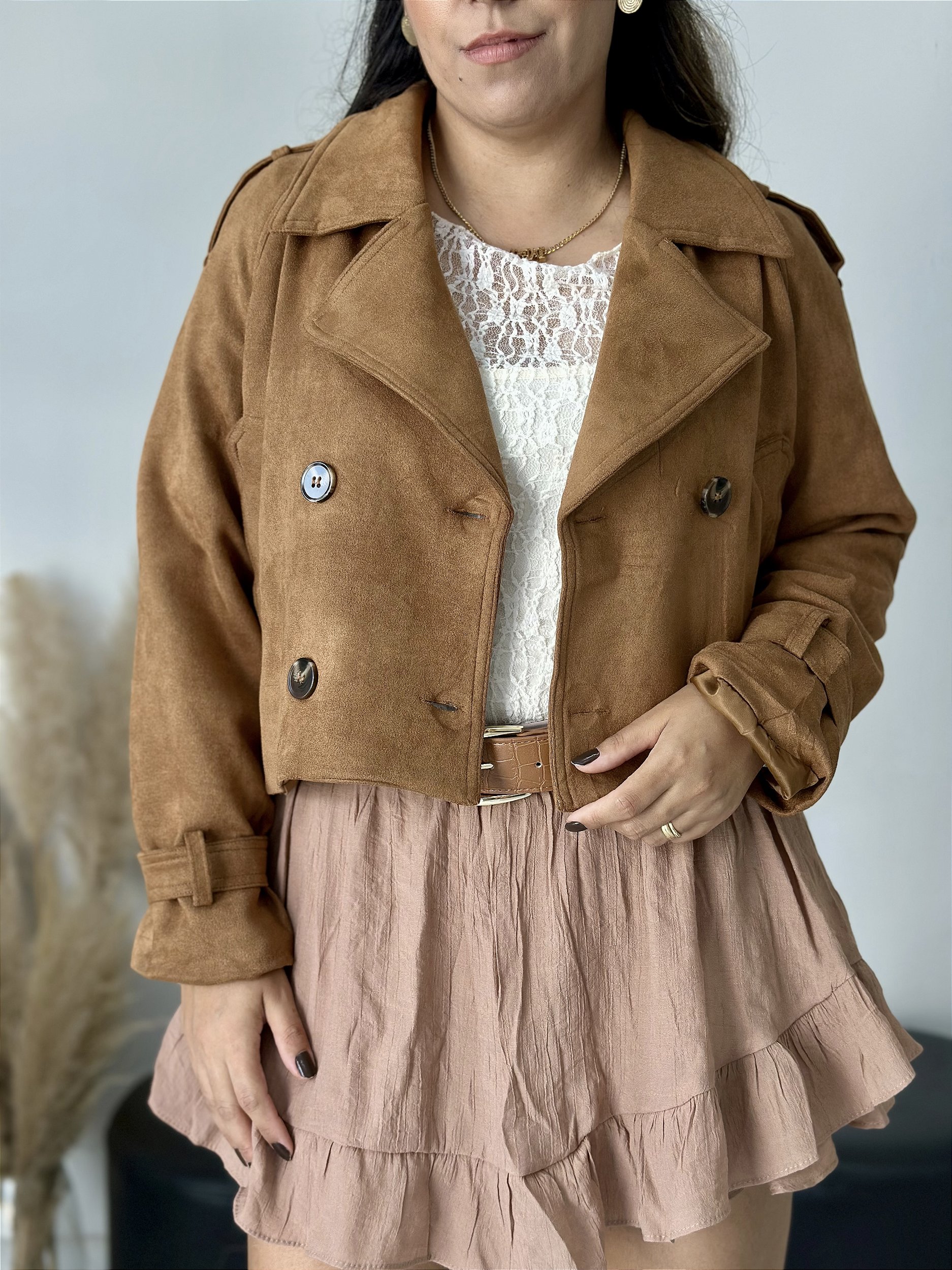Detalhes: Jaqueta em Sued, com detalhe nos punhos e nos ombro com botões marrom. Jaqueta toda forrada!