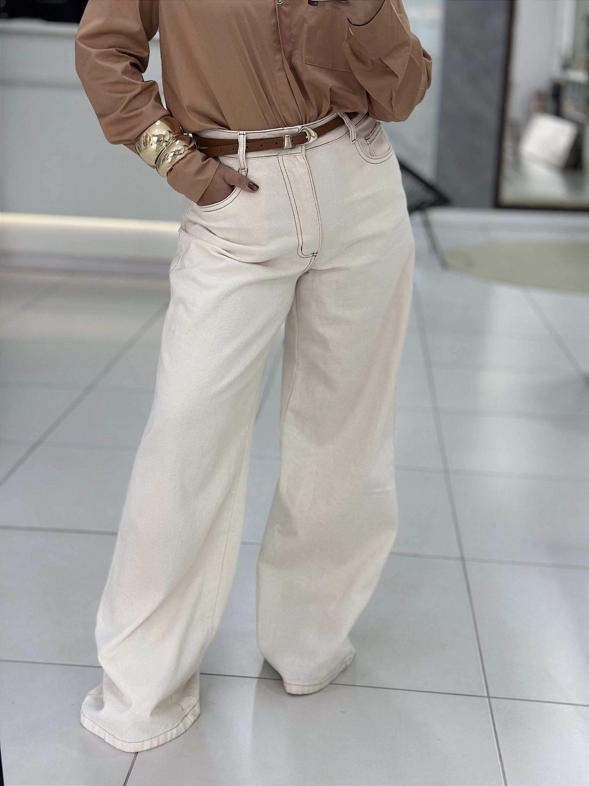Calça em sarja modelo pantalona, 100% algodão, ou seja é uma calça que não possui elastano, e vai laciar ainda mais com o uso, voltando a sua forma original quando lavada.