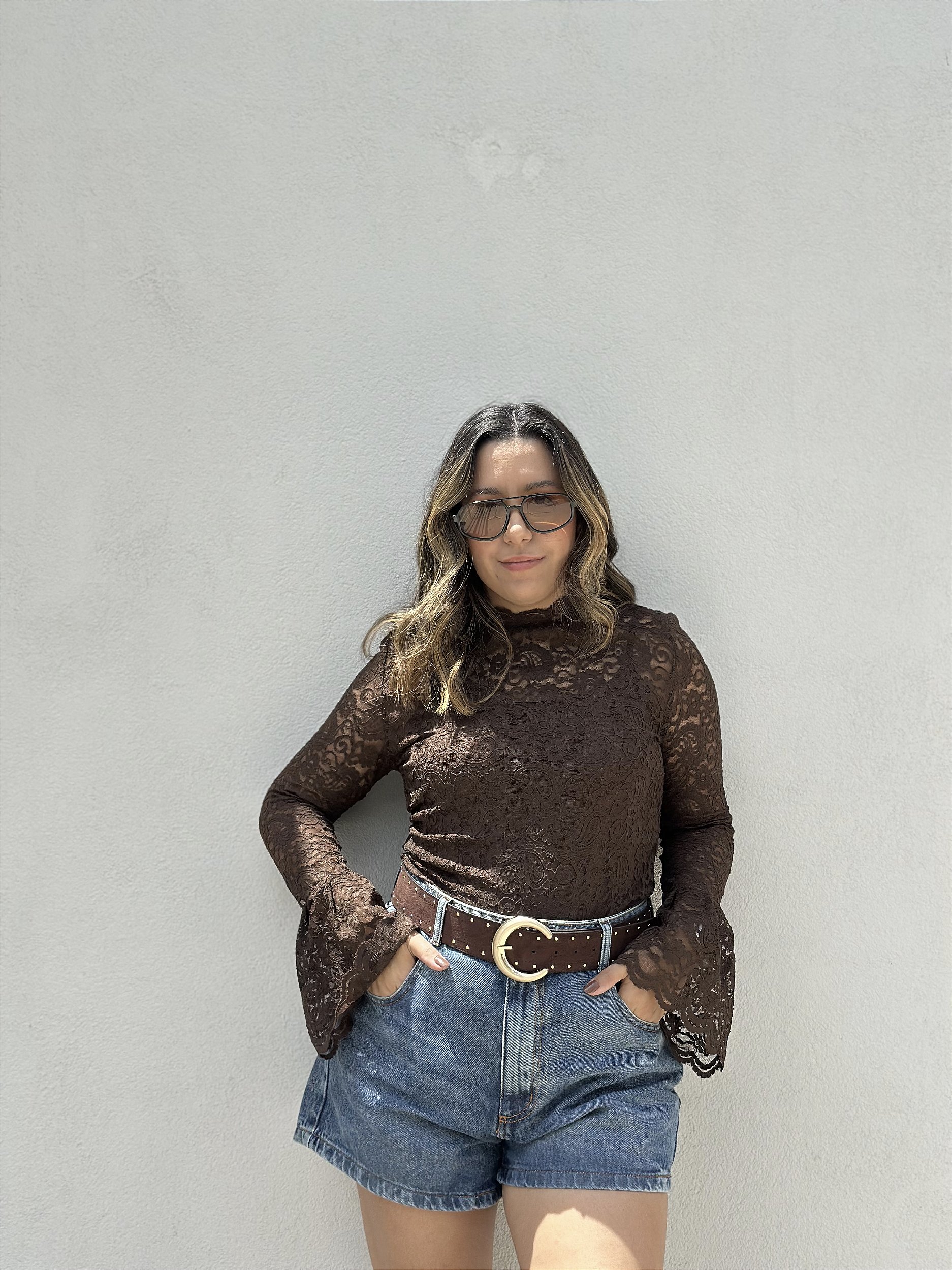 Cuidados com a peça: peça com tendência a laciar conforme uso e voltar ao padrão quando lavado. Não secar na secadora de roupas