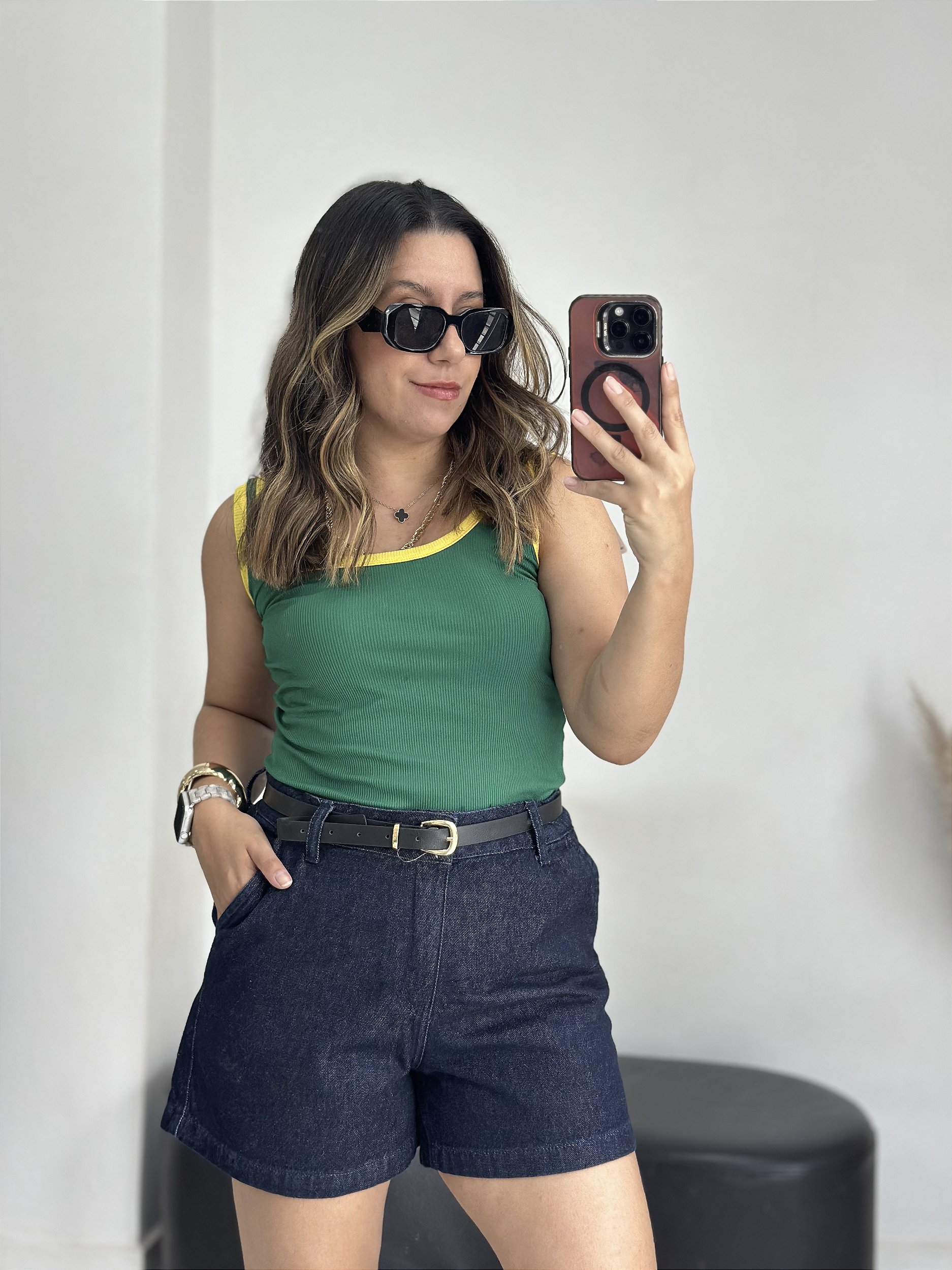 Detalhes: Shorts com cos alto, bolso faca, sem elastano, num corte que lembra alfaiataria.
